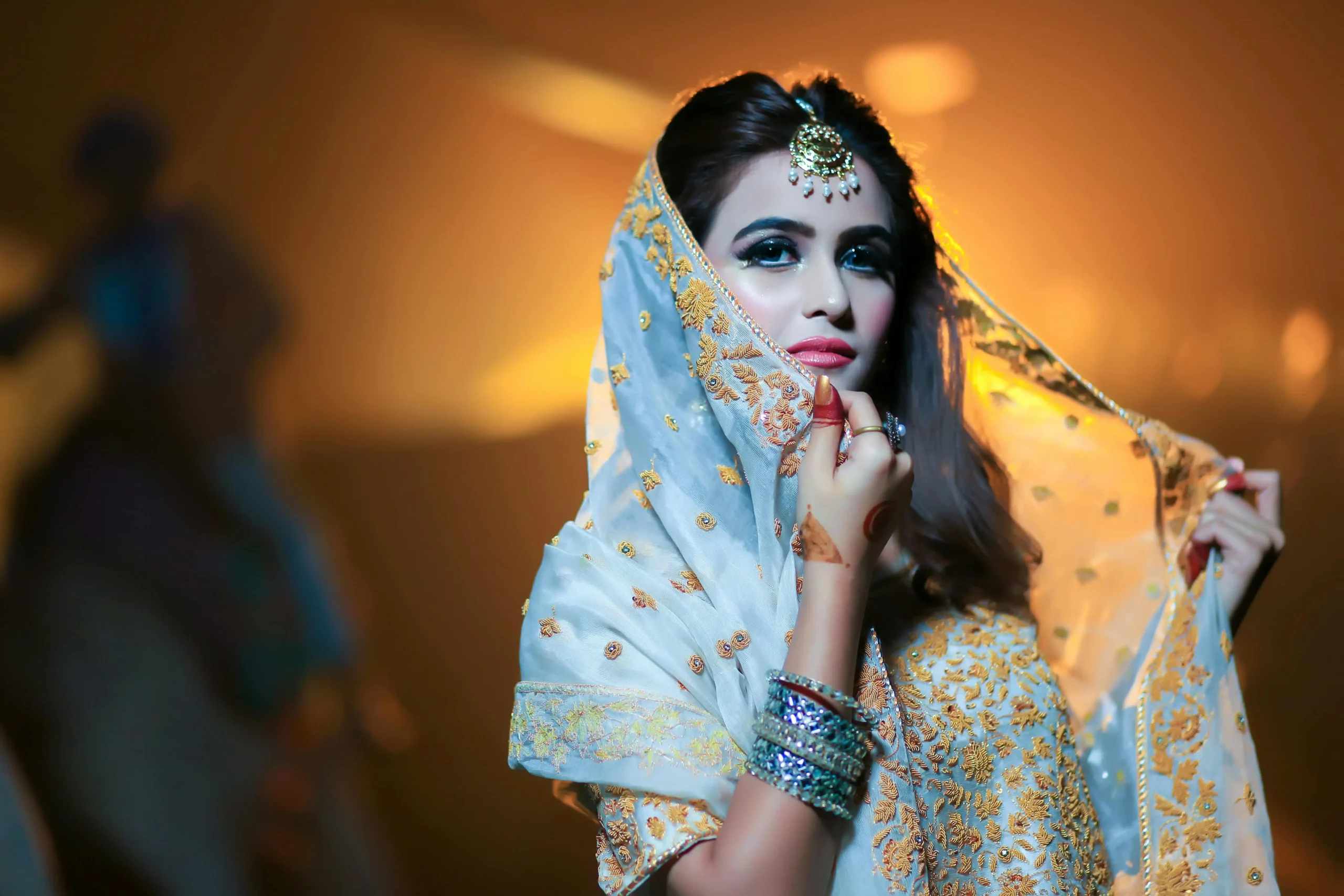 Eye shapes range from almond to round, with striking green eyes, smoky brown eyes, and icy blue that feels like a clear sky. Skin ranges from deep mahogany to olive to pearl, each shade radiant on its own terms. Styles nod to heritage, from embroidered textures to modern minimal looks.